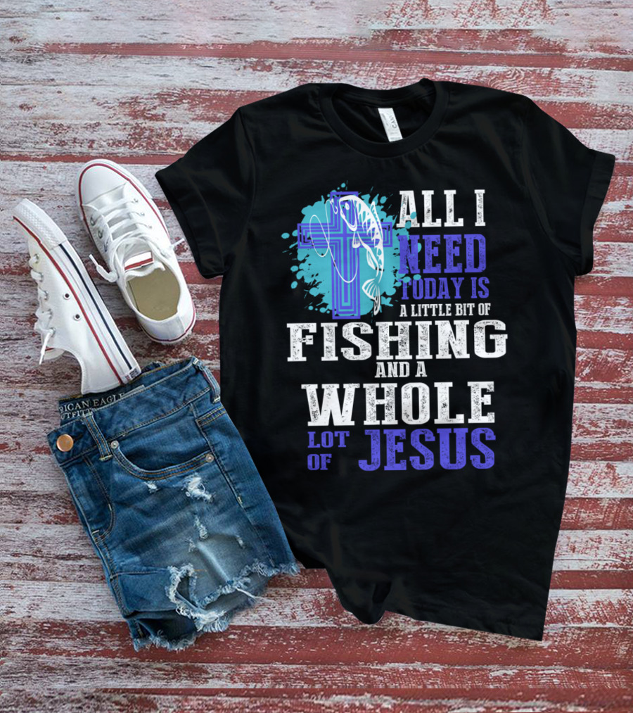 All I Need Today Is A Little Bit Of Fishing And A Whole Lot Of Jesus Christian Cross Faith T-Shirt
