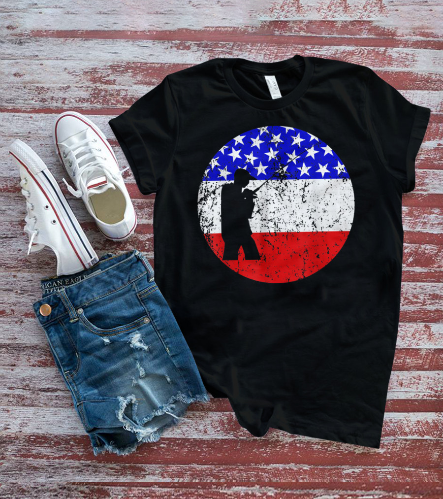 American Flag Vintage Fisherman Silhouette Rustic Retro Fishing T-Shirt
