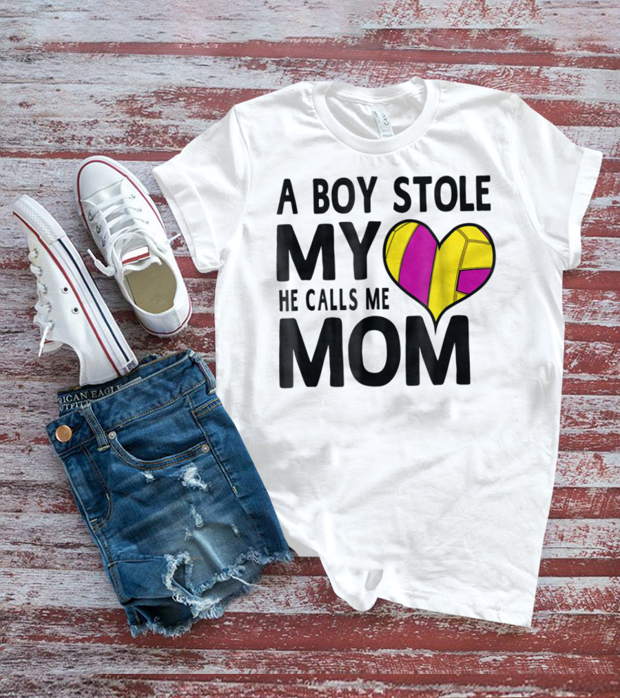 A Boy Stole My Heart He Calls Me Mom Volleyball Heart T-Shirt