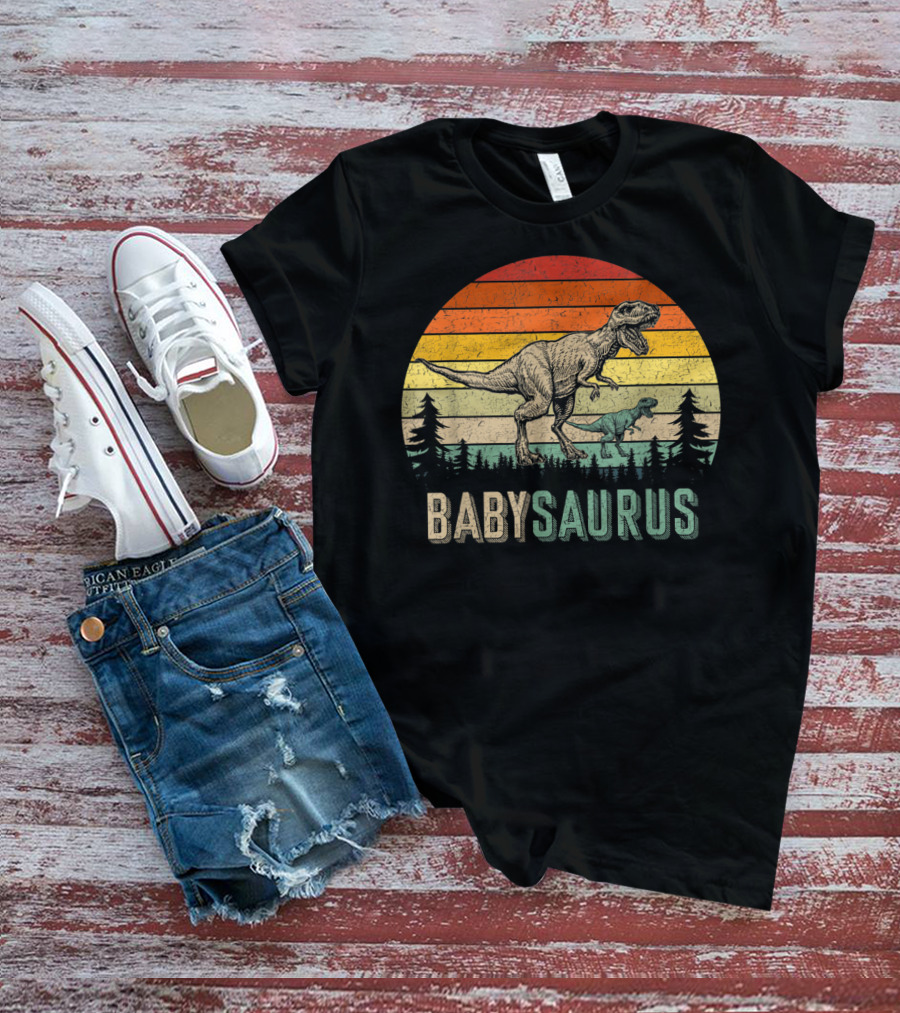 The Babysaurus Dinosaurs Vintage Father's Retro Sunset T-Rex Family Shirt offers a regular fit. Made from 100% ring-spun cotton that is pre-shrunk to help maintain size and shape after washing. Features reinforced construction details for durability. Available in U.S. standard sizes S-5XL to accommodate various body types.