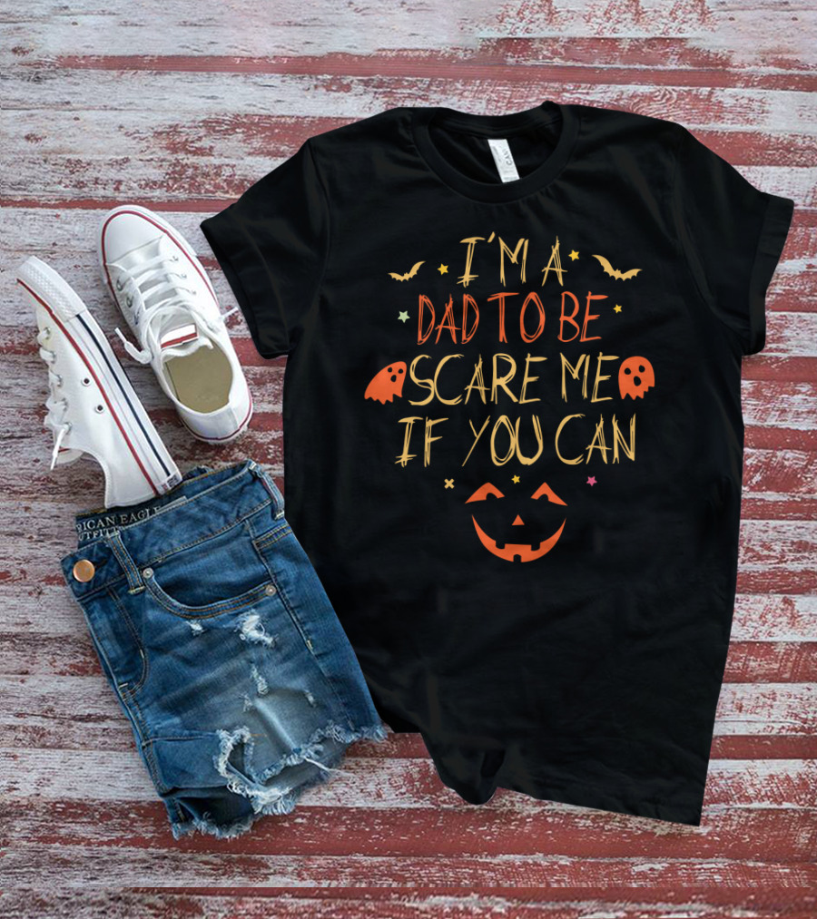 I'm A Dad To Be Scare Me If You Can Halloween Pumpkin Ghosts Bats T-Shirt