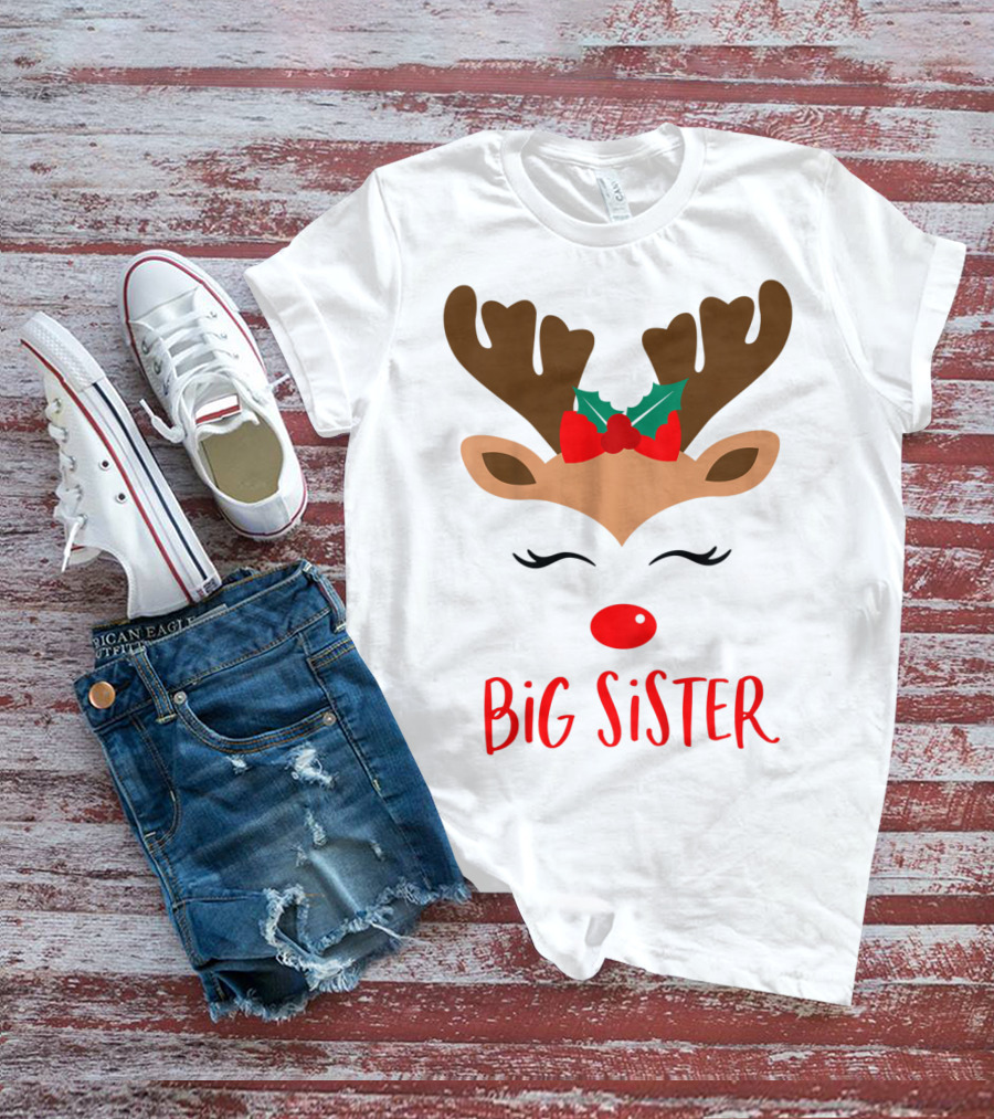 Big Sister Reindeer Christmas Matching Sibling Outfits T-Shirt
