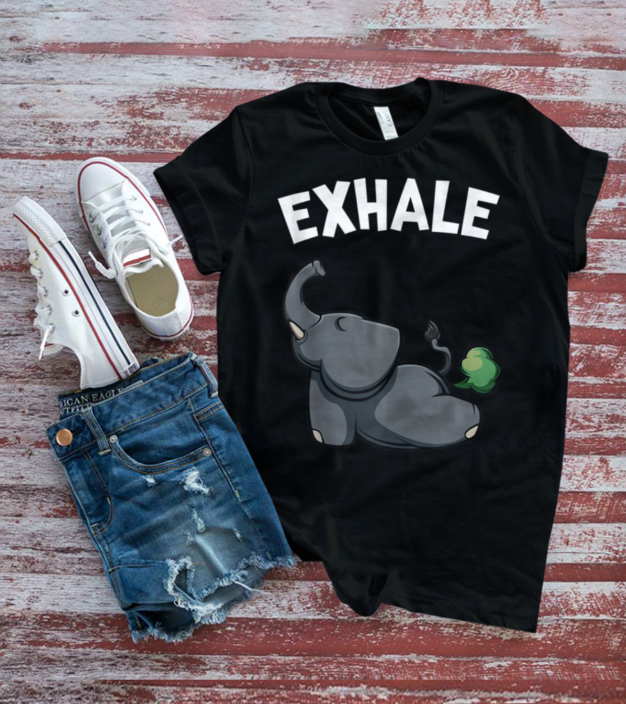 Exhale Funny Cute Farting Elephant Yoga Namaste Workout T-Shirt