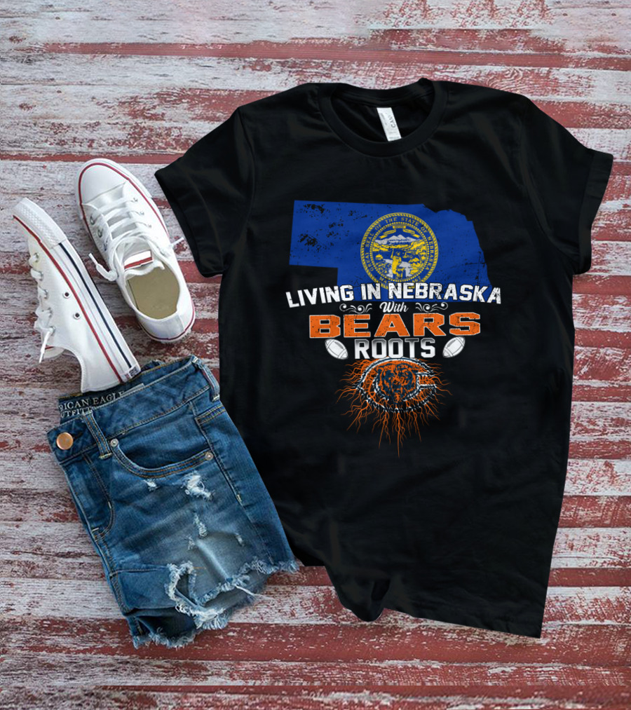 The Living in Nebraska With Chicago Bears Roots Nebraska State Flag Background Shirt offers a regular fit. Made from 100% ring-spun cotton that is pre-shrunk to help maintain size and shape after washing. Features reinforced construction details for durability. Available in U.S. standard sizes S-5XL to accommodate various body types.