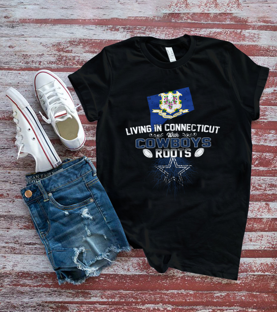 Living In Connecticut Proudly Embracing Cowboys Roots With Football And Star T-Shirt