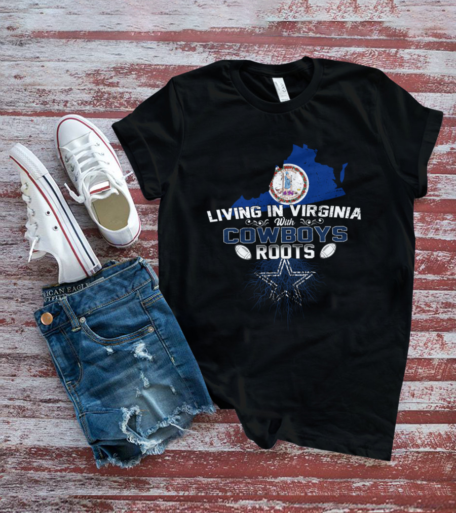 Living In Virginia With Cowboys Roots Star And Footballs T-Shirt