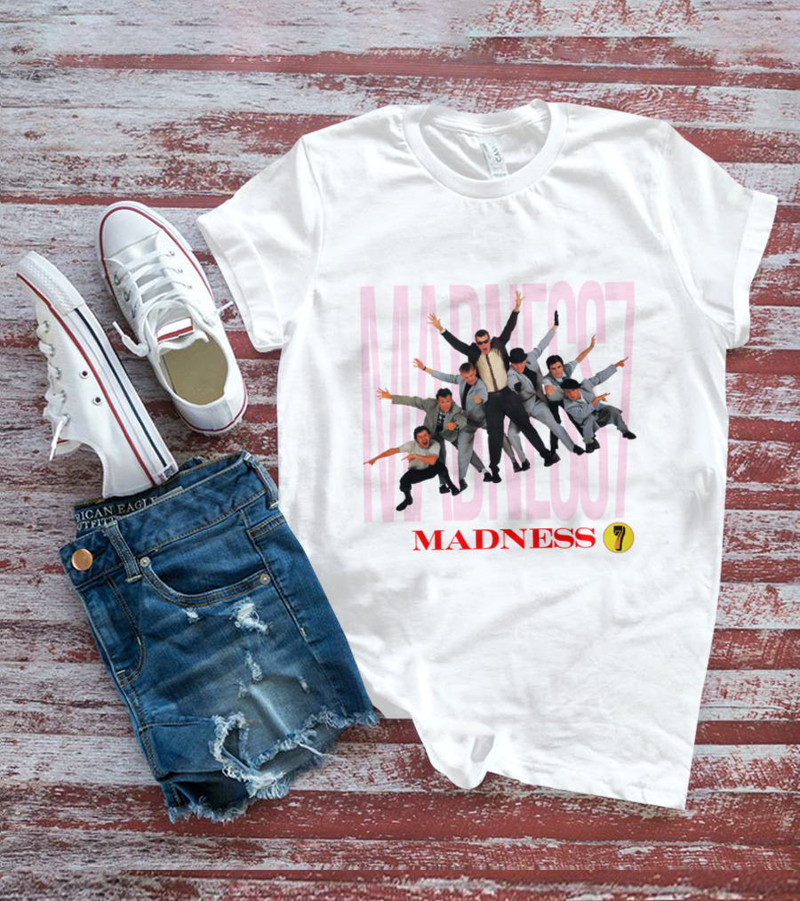 The Madness 7 Band Group Pose Shirt offers a regular fit. Made from 100% ring-spun cotton that is pre-shrunk to help maintain size and shape after washing. Features reinforced construction details for durability. Available in U.S. standard sizes S-5XL to accommodate various body types.