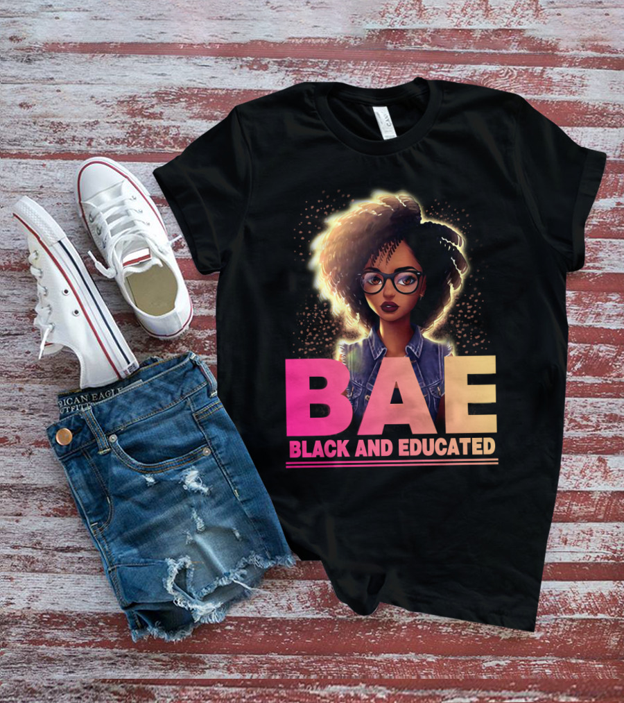 BAE Black And Educated Confident Curly Hair Afro Glasses Bold Empowerment T-Shirt