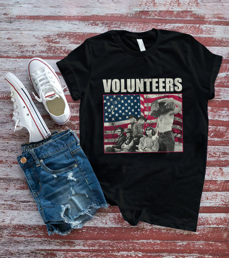 The Volunteers Jefferson Airplane American Flag Band Photo Shirt offers a regular fit. Made from 100% ring-spun cotton that is pre-shrunk to help maintain size and shape after washing. Features reinforced construction details for durability. Available in U.S. standard sizes S-5XL to accommodate various body types.