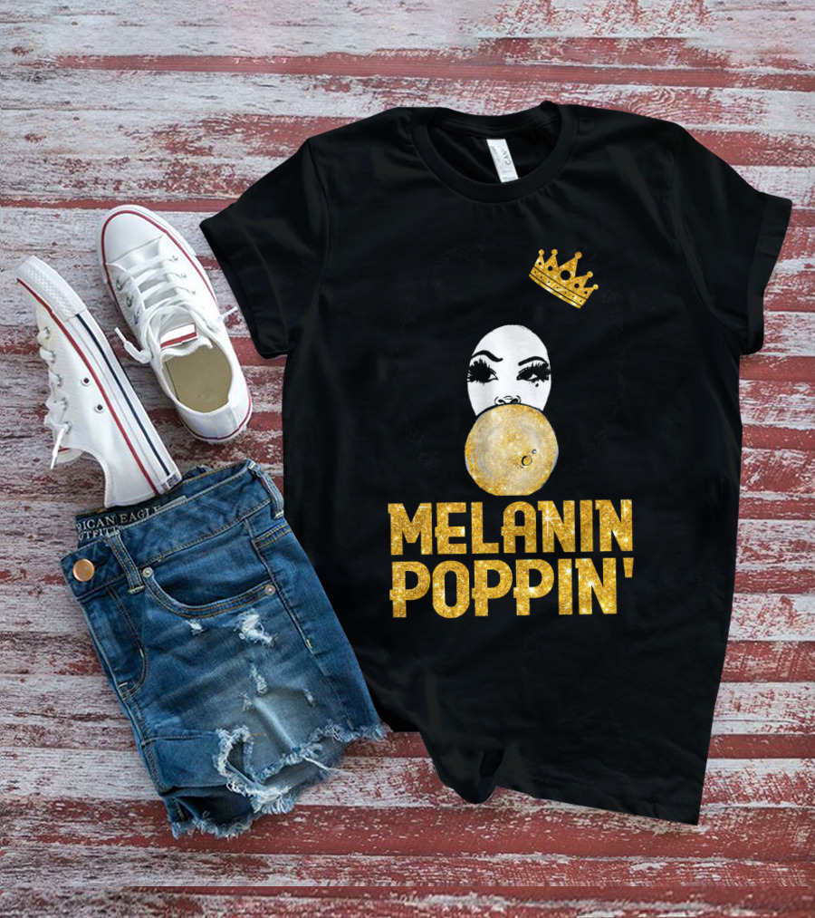 Melanin Poppin' Afro Queen Gold Bubblegum Crown T-Shirt