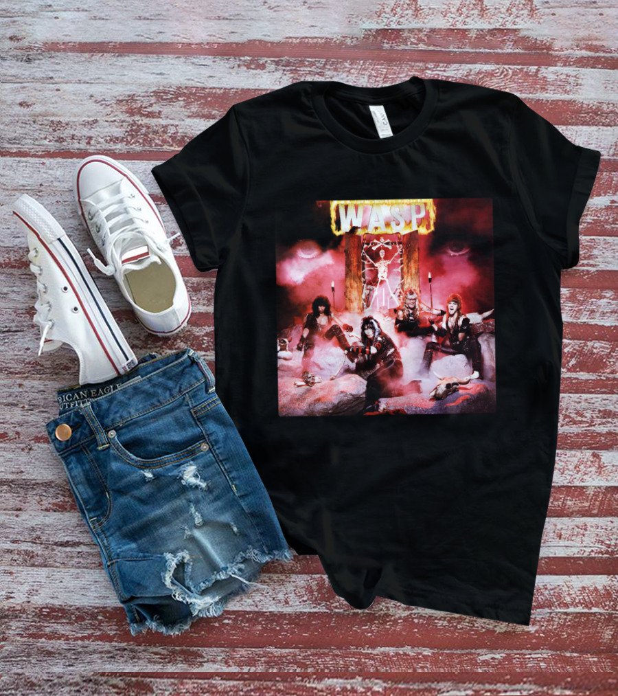 The Wasp Burning Cross Skull Imagery Band Poster Shirt offers a regular fit. Made from 100% ring-spun cotton that is pre-shrunk to help maintain size and shape after washing. Features reinforced construction details for durability. Available in U.S. standard sizes S-5XL to accommodate various body types.