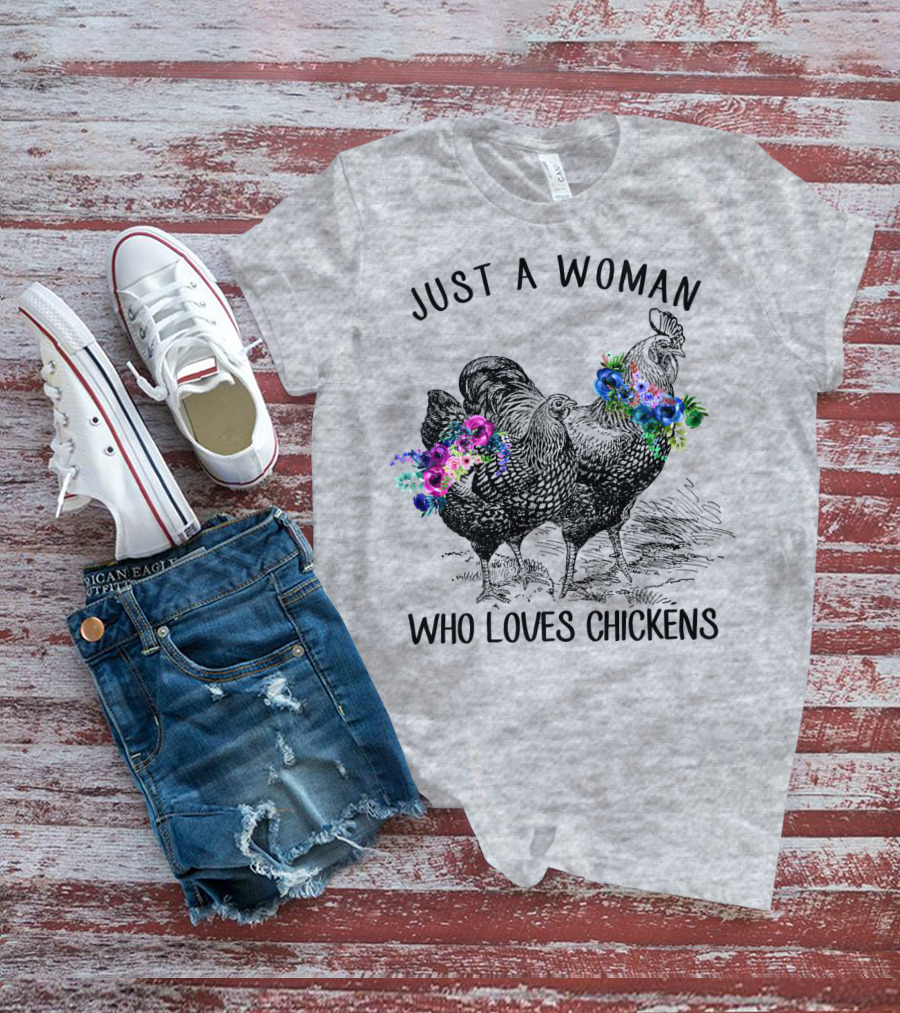 Just A Woman Who Loves Chickens With Floral Accents T-Shirt