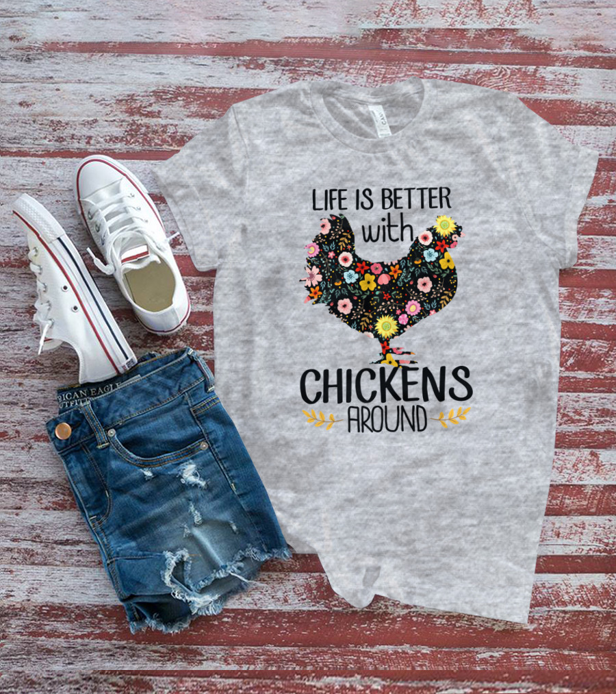 Life Is Better With Chickens Around Floral T-Shirt
