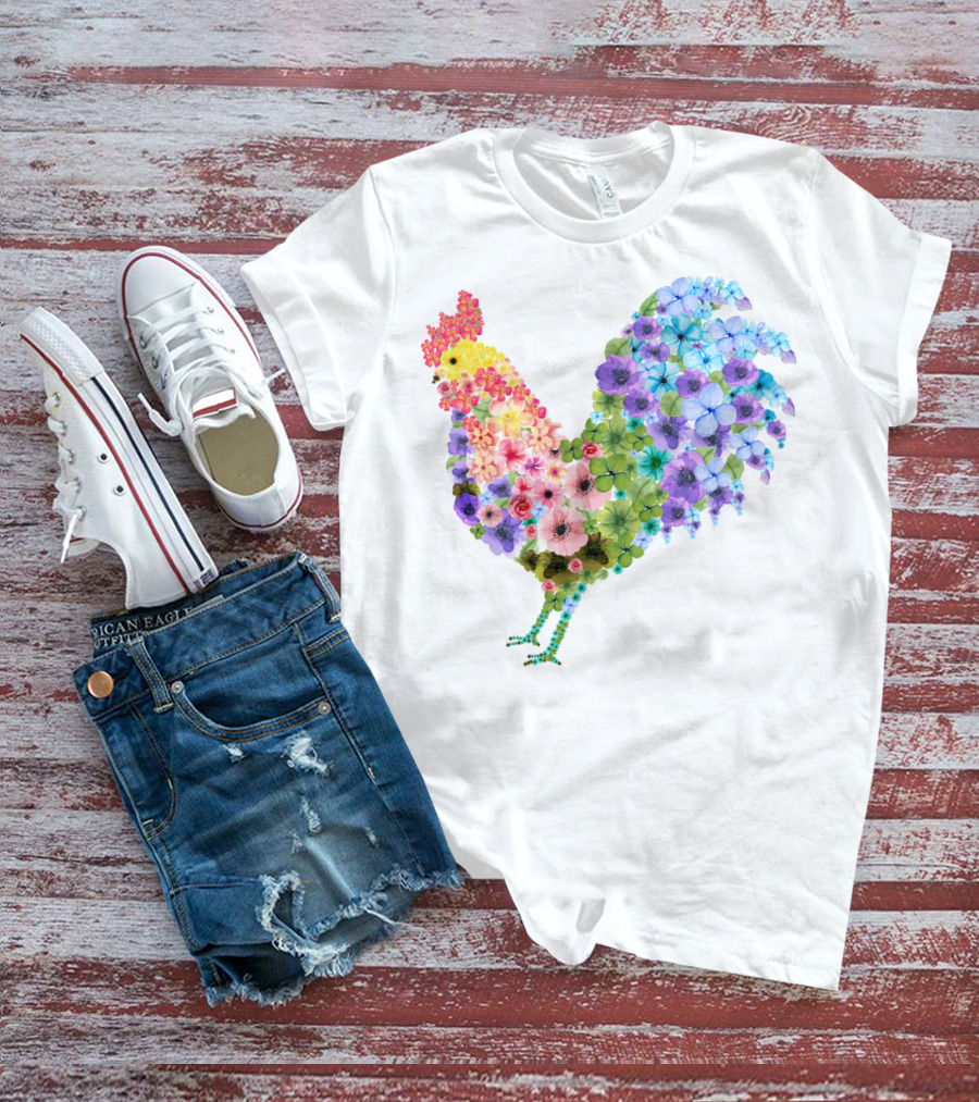 The CHICKEN Flower Patterned Rooster with Vibrant Floral Colors Shirt offers a regular fit. Made from 100% ring-spun cotton that is pre-shrunk to help maintain size and shape after washing. Features reinforced construction details for durability. Available in U.S. standard sizes S-5XL to accommodate various body types.