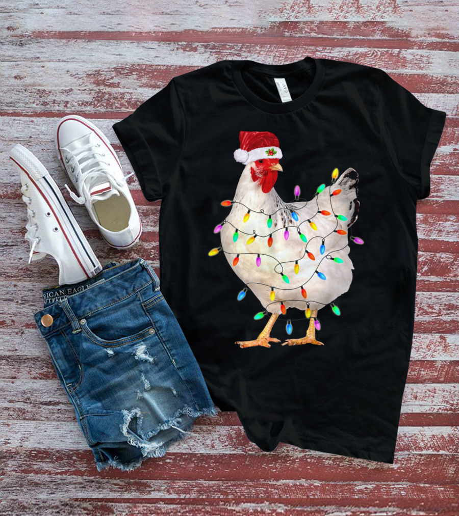 The CHICKEN LIGHT CHRISTMAS SANTA HAT STRING LIGHTS Shirt offers a regular fit. Made from 100% ring-spun cotton that is pre-shrunk to help maintain size and shape after washing. Features reinforced construction details for durability. Available in U.S. standard sizes S-5XL to accommodate various body types.