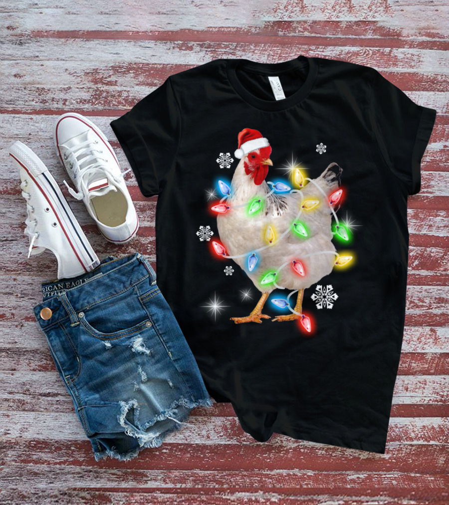 Chicken Noel Christmas Lights Santa Hat Snowflakes T-Shirt