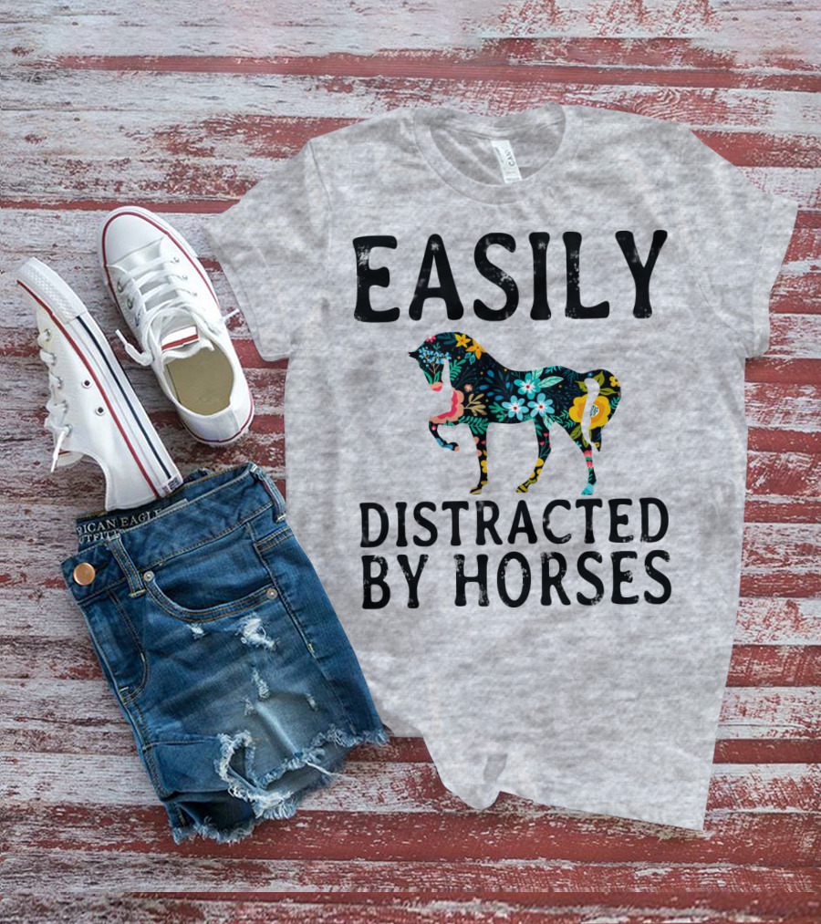Easily Distracted By Horses Floral T-Shirt
