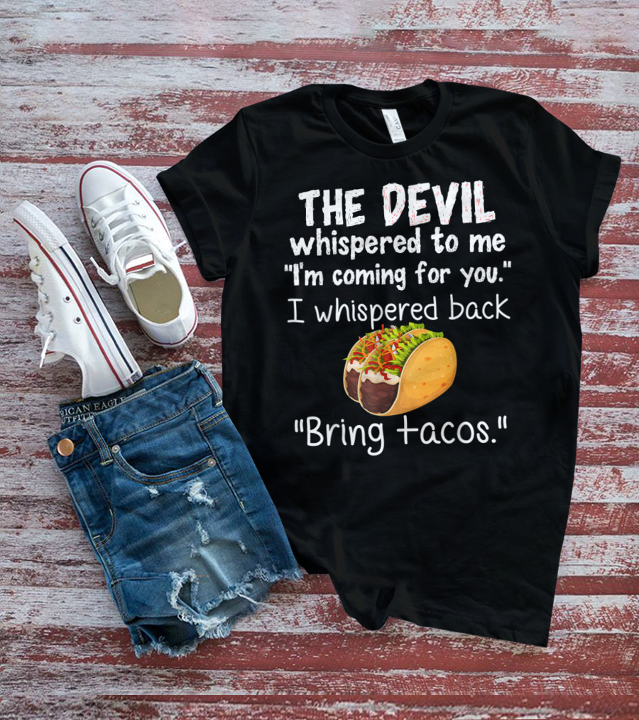 The Devil Whispered To Me I'm Coming For You I Whispered Back Bring Tacos T-Shirt