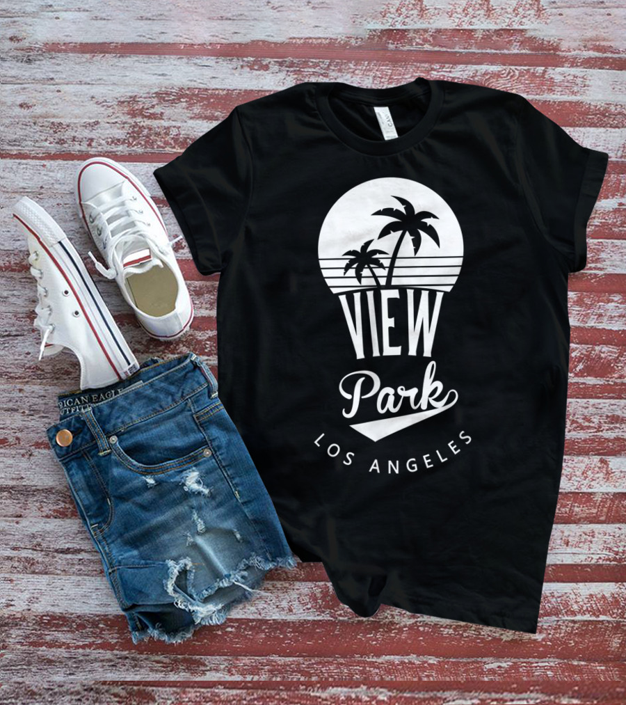 View Park Los Angeles Palm Trees Retro Sunset T-Shirt