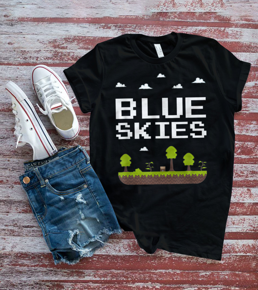 Blue Skies Classic Video Games Gamer Pixelated Trees Landscape T-Shirt