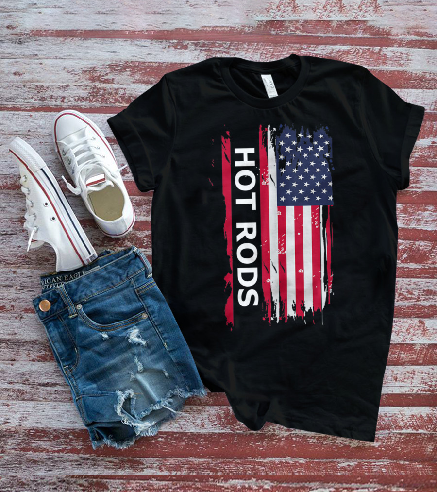 HOT RODS American Flag Classic Muscle Cars T-Shirt