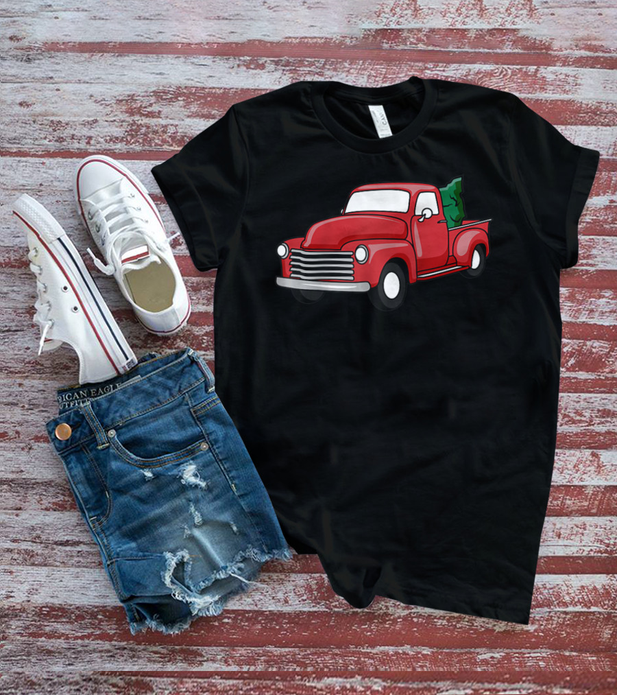 Christmas Holiday Red Classic Truck With Evergreen Tree T-Shirt
