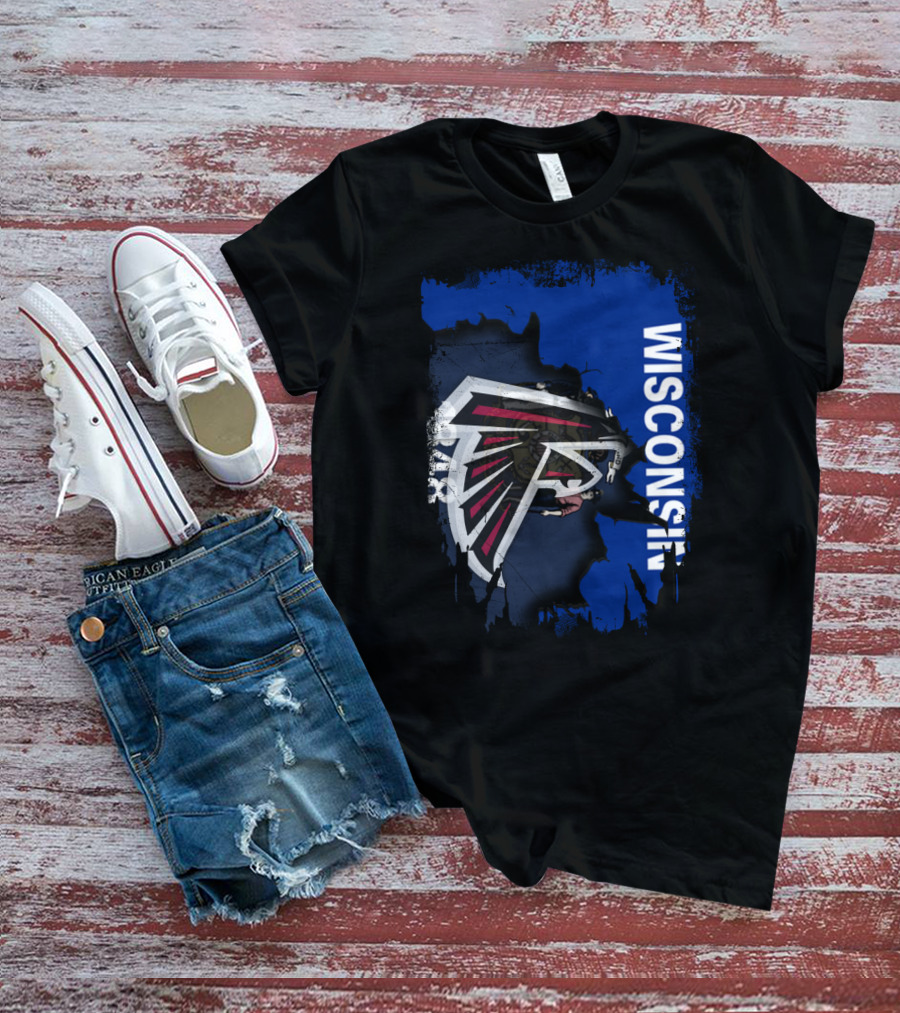 Wisconsin Torn Map Design Featuring Falcons T-Shirt