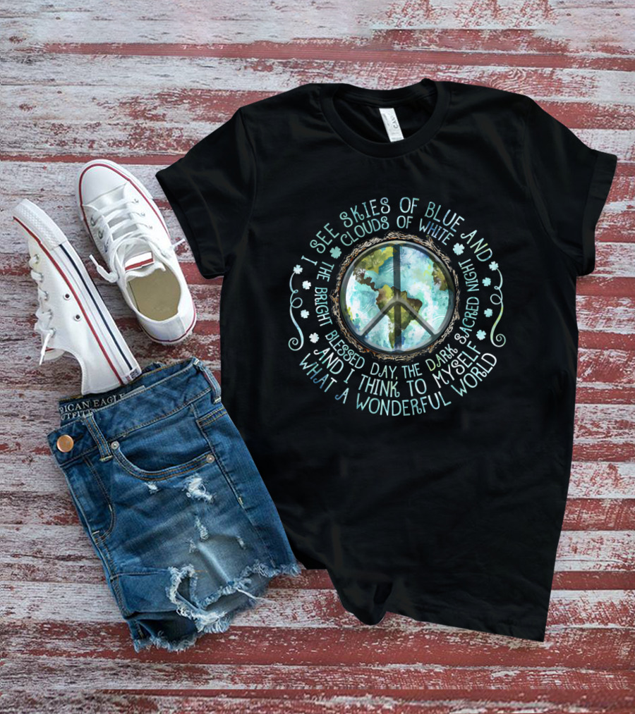 I See Skies Of Blue And Clouds Of White What A Wonderful World Peace Earth T-Shirt