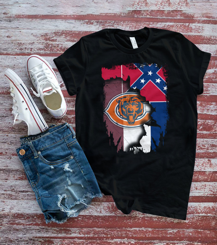 Chicago Bears Logo Over Mississippi Flag Tear T-Shirt