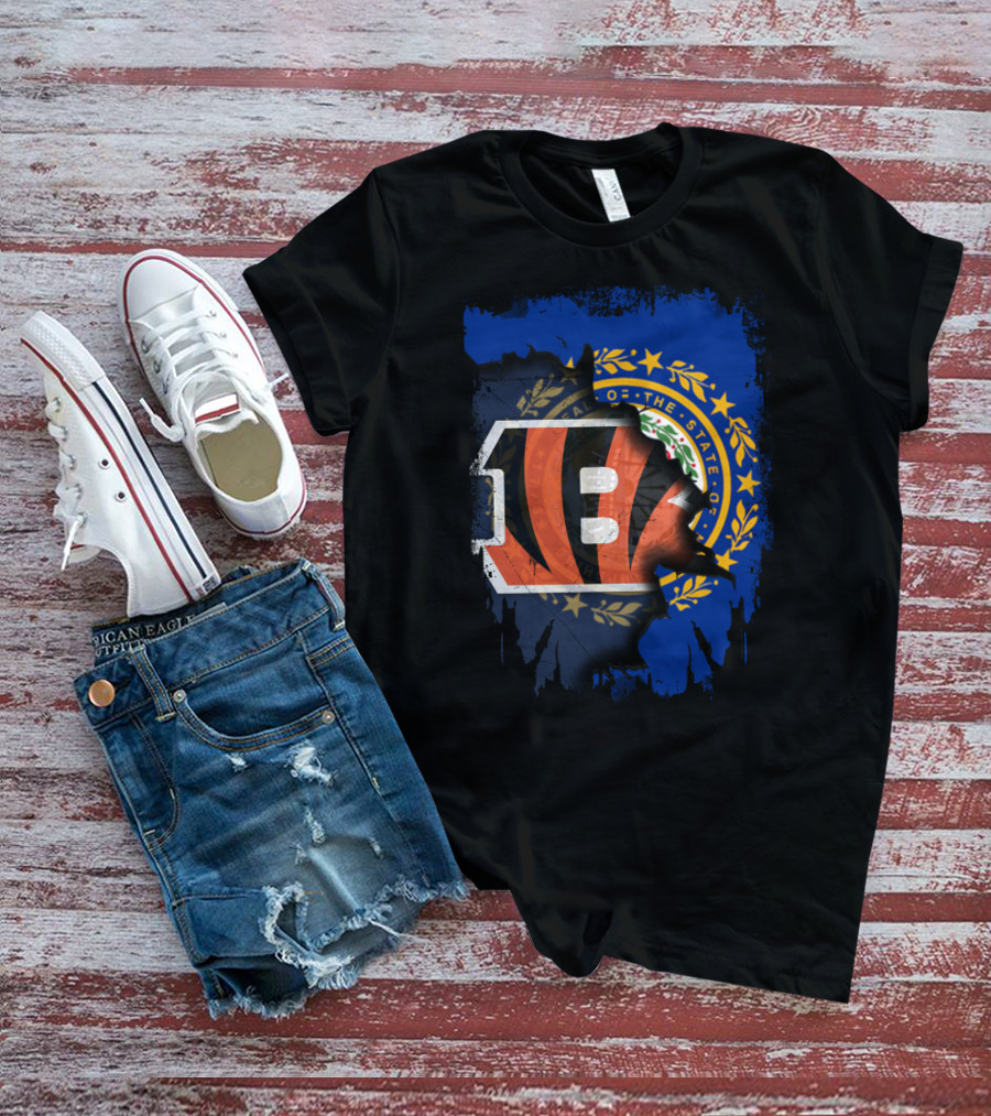 New Hampshire State Flag With Cincinnati Bengals Stripes T-Shirt
