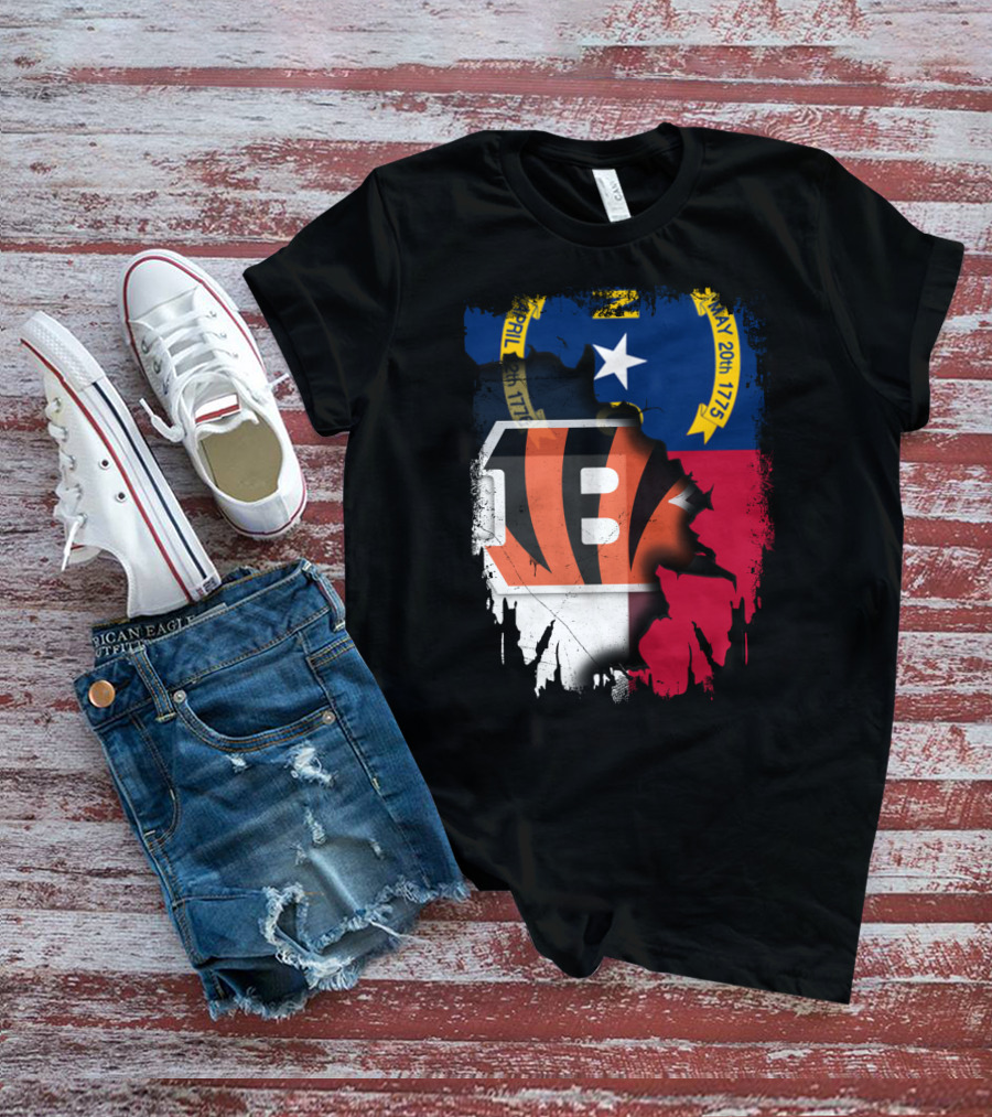North Carolina State Flag Blended With Bengals Team T-Shirt