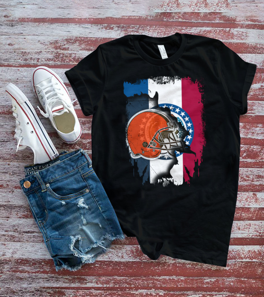 Cleveland Browns Helmet Over Missouri Flag Background T-Shirt