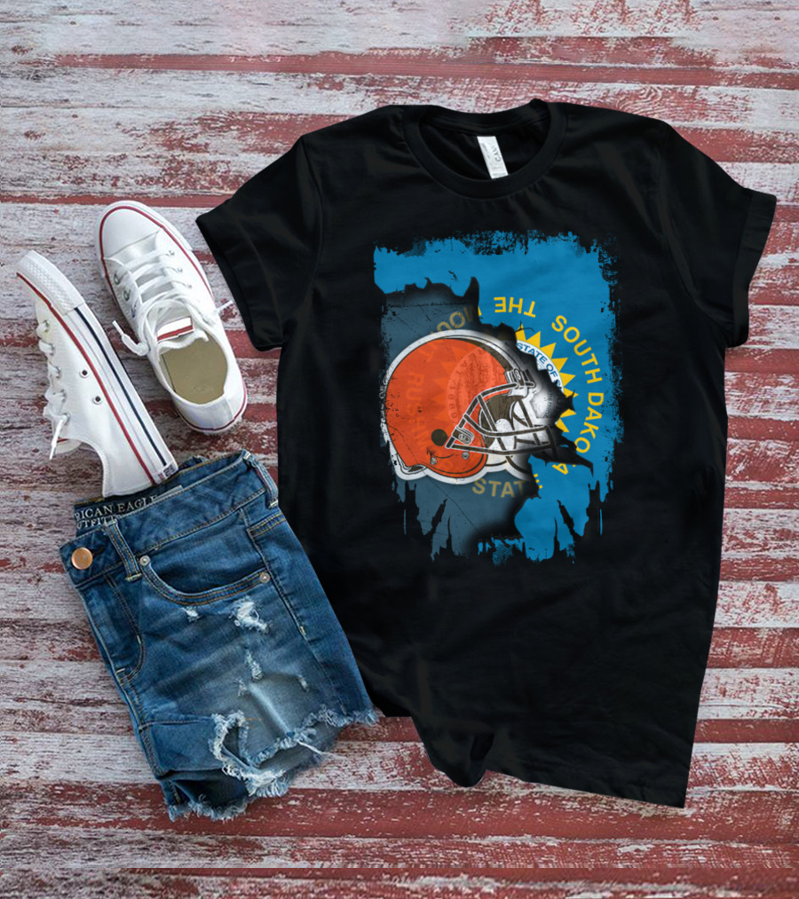 South Dakota State Flag With Cleveland Browns Helmet T-Shirt
