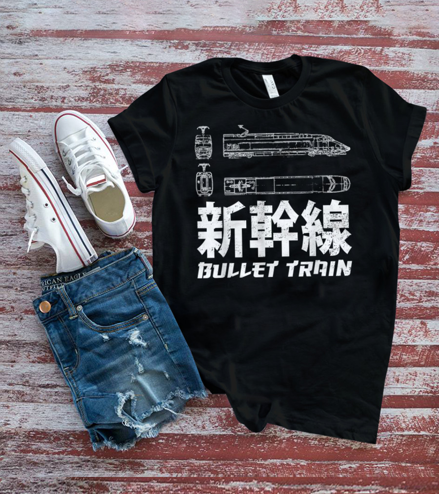 The Shinkansen Bullet Train Blueprint Japanese Text Shirt offers a regular fit. Made from 100% ring-spun cotton that is pre-shrunk to help maintain size and shape after washing. Features reinforced construction details for durability. Available in U.S. standard sizes S-5XL to accommodate various body types.