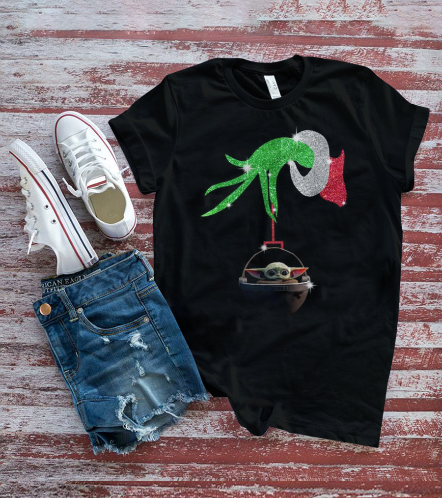 Grinch Glitter Hand Holding Baby Yoda T-Shirt