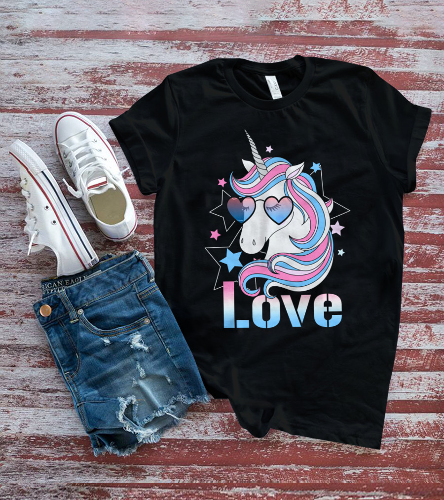 Love Unicorn Heart Glasses With Stars T-Shirt