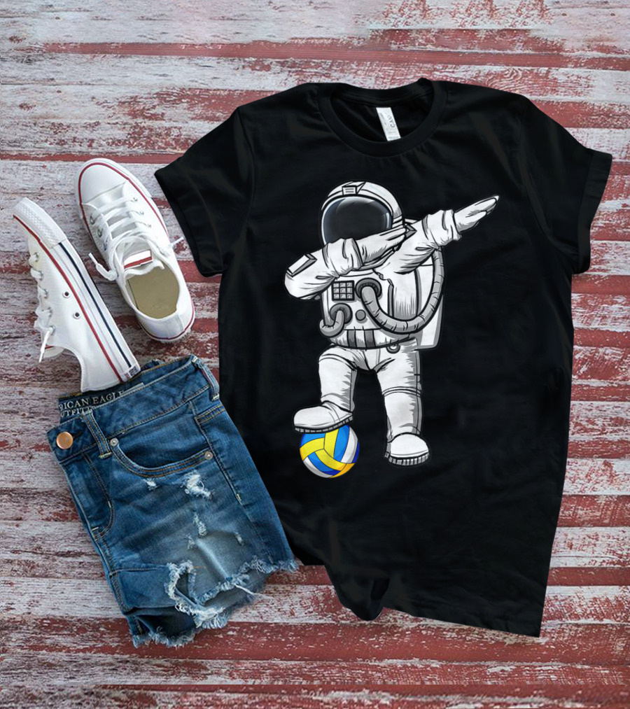 Cute Astronaut Dabbing With Volleyball Astronomy Lovers Galaxy T-Shirt