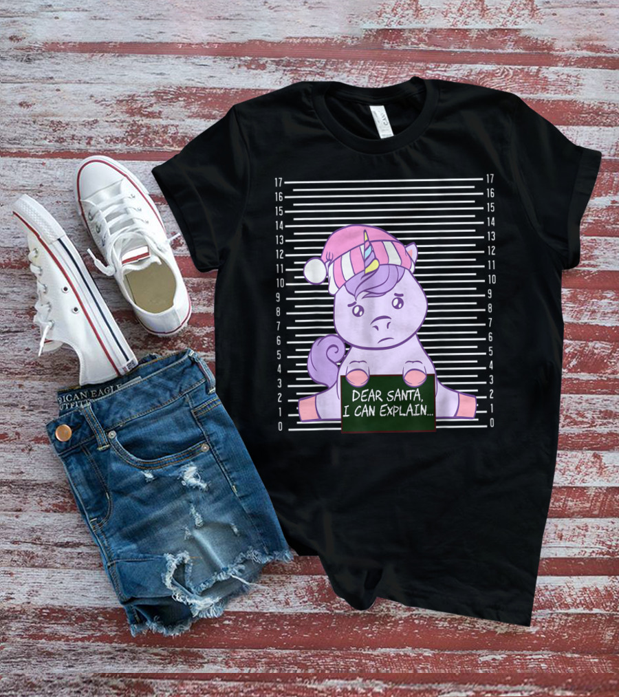 Dear Santa I Can Explain Mugshot Unicorn Christmas Hat T-Shirt