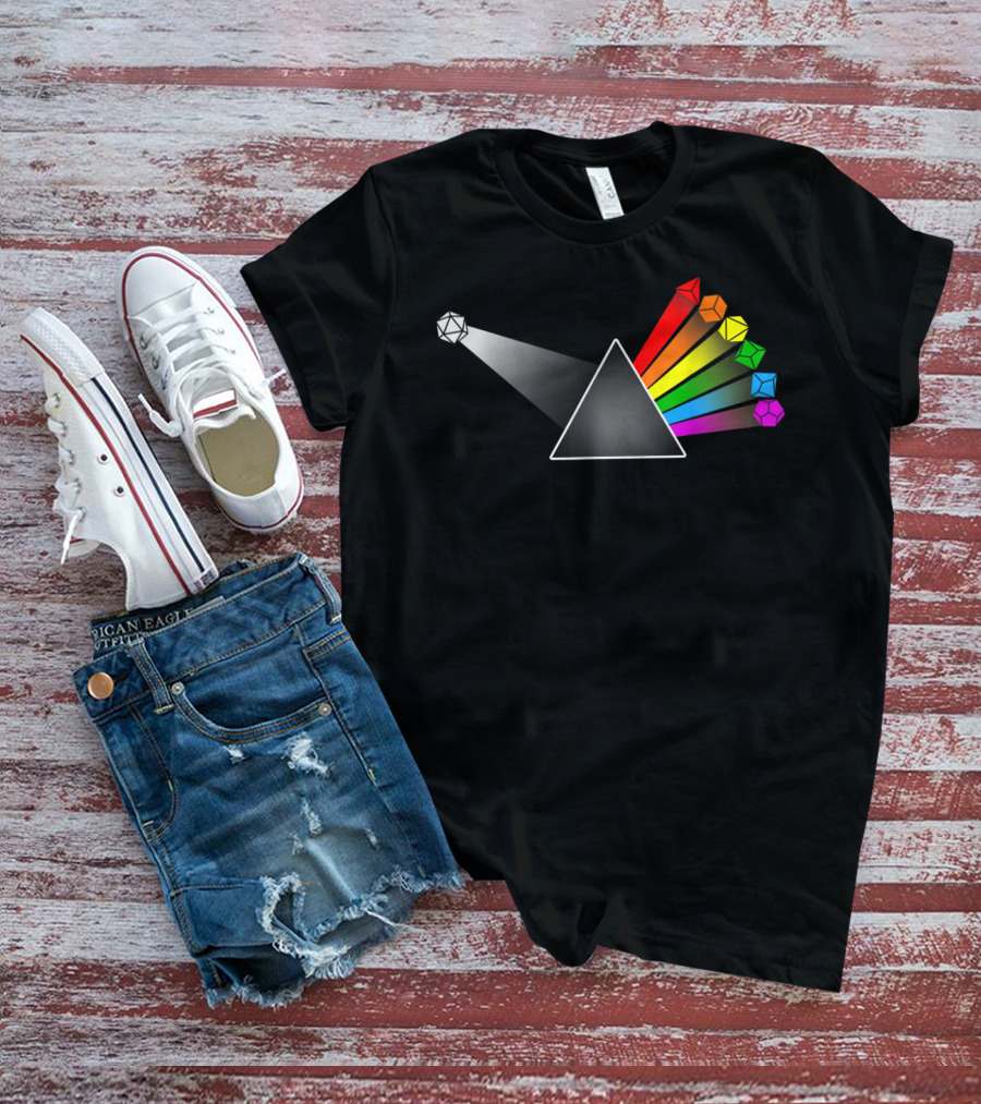 Diceside Of The Moon D20 Dice Set Tabletop Prism Design Multicolor Spectrum T-Shirt