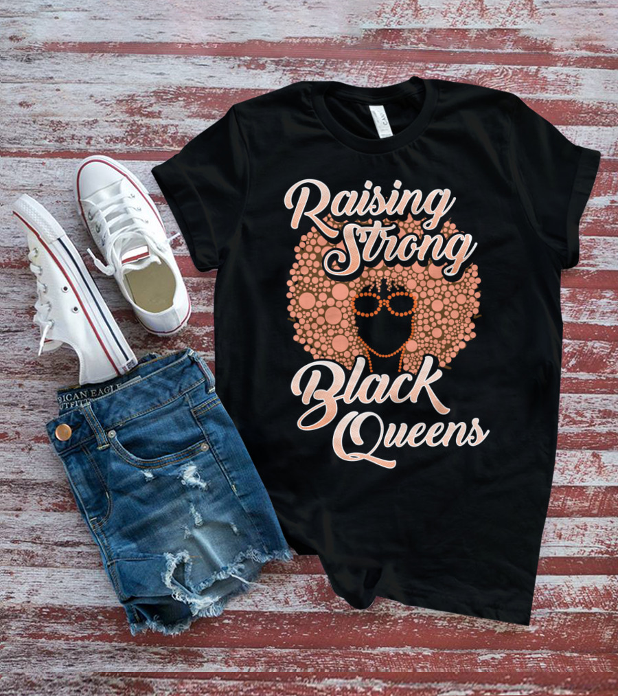 The Raising Strong Black Queens Shirt offers a regular fit. Made from 100% ring-spun cotton that is pre-shrunk to help maintain size and shape after washing. Features reinforced construction details for durability. Available in U.S. standard sizes S-5XL to accommodate various body types.