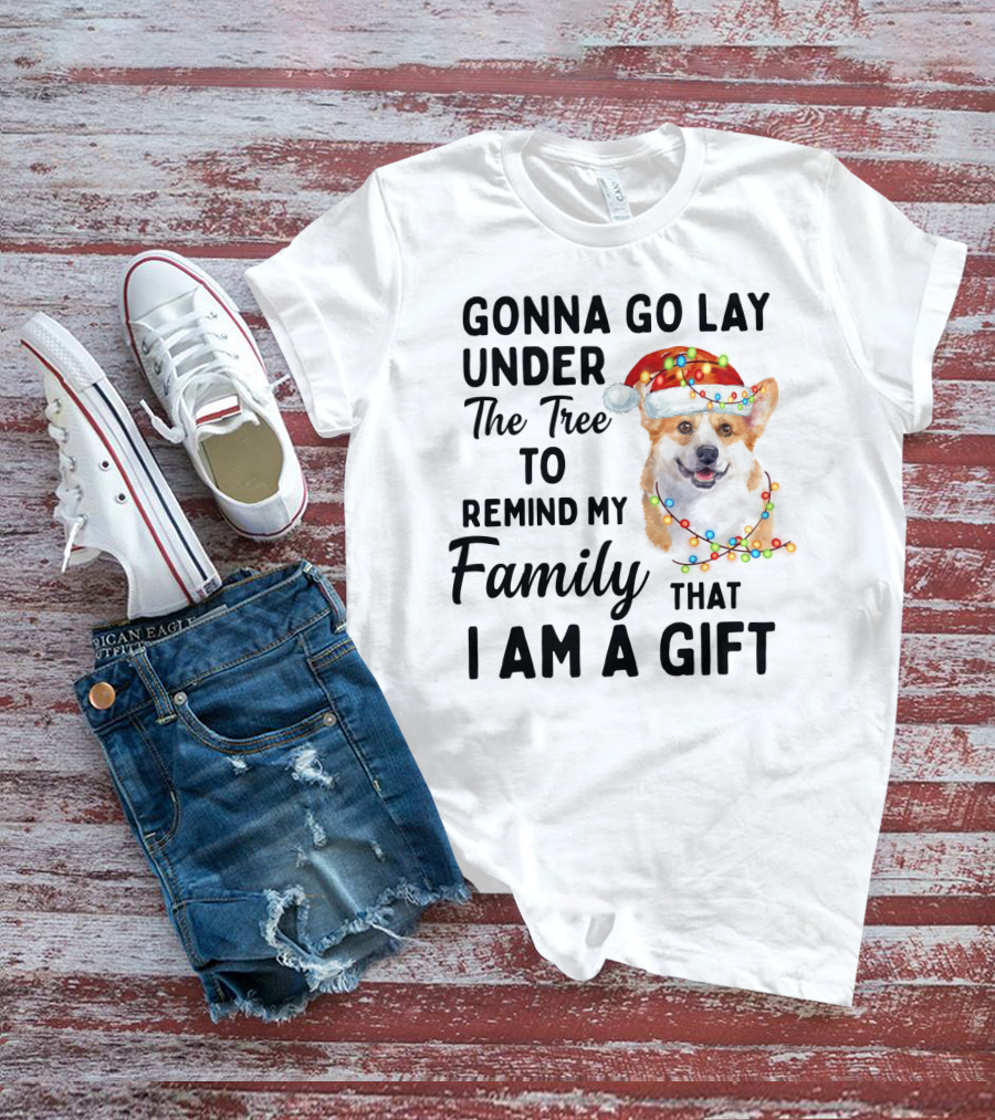 Gonna Go Lay Under The Tree To Remind My Family That I Am A Gift Corgi Christmas Lights Santa Hat T-Shirt