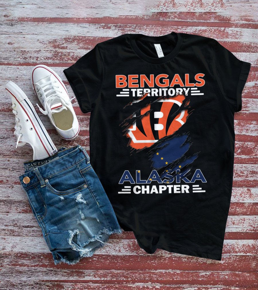 The Bengals Territory Alaska Chapter Logo with Torn Effect and Flag Elements Shirt offers a regular fit. Made from 100% ring-spun cotton that is pre-shrunk to help maintain size and shape after washing. Features reinforced construction details for durability. Available in U.S. standard sizes S-5XL to accommodate various body types.