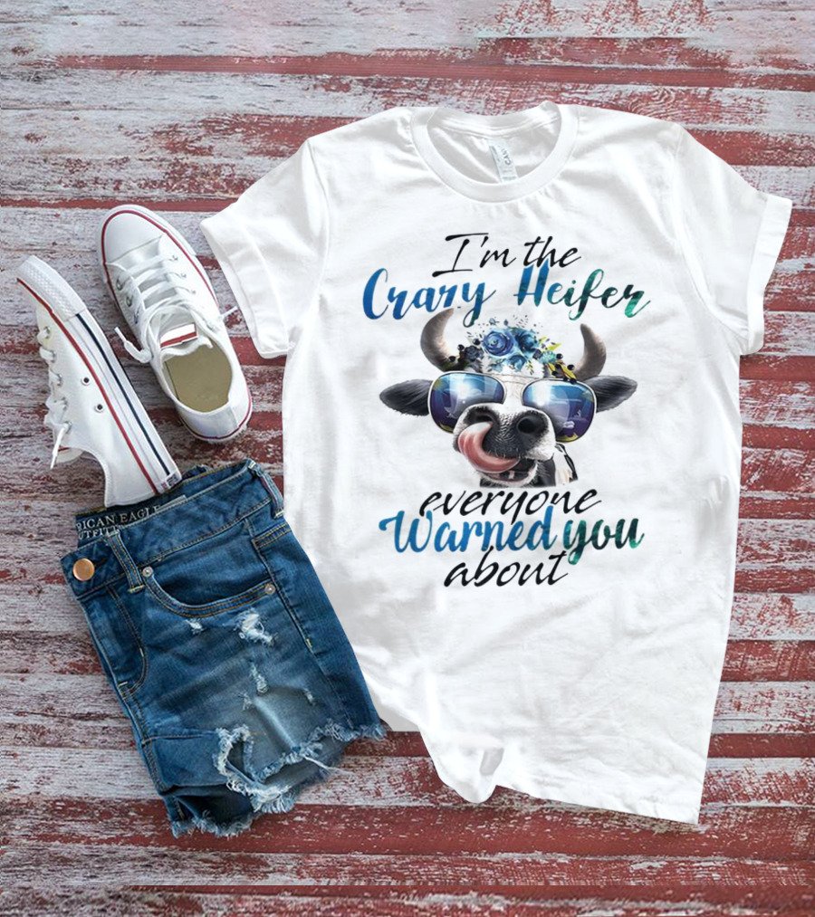 I'm The Crazy Heifer Everyone Warned You About Cow With Sunglasses And Floral Headpiece T-Shirt