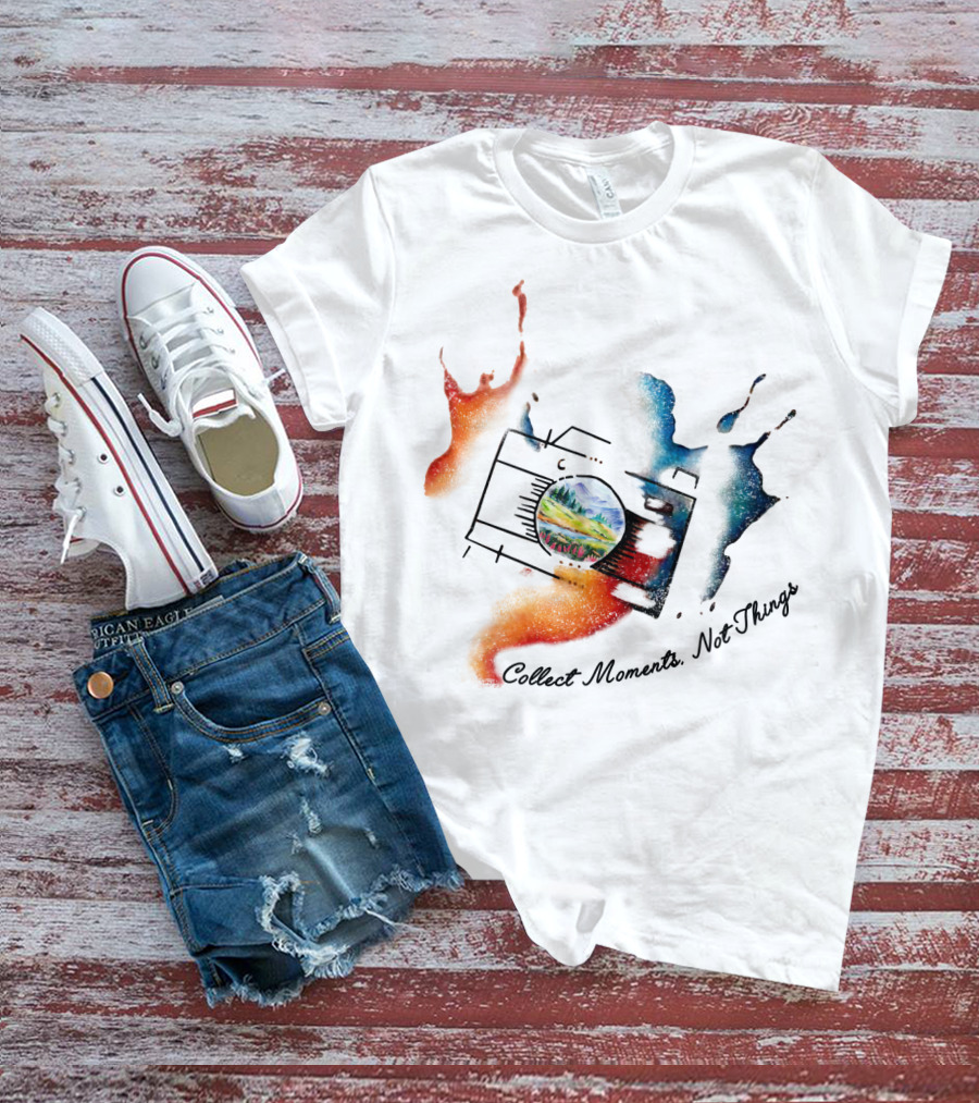 The Collect Moments Not Things Camera Nature Landscape Watercolor Splash Shirt offers a regular fit. Made from 100% ring-spun cotton that is pre-shrunk to help maintain size and shape after washing. Features reinforced construction details for durability. Available in U.S. standard sizes S-5XL to accommodate various body types.