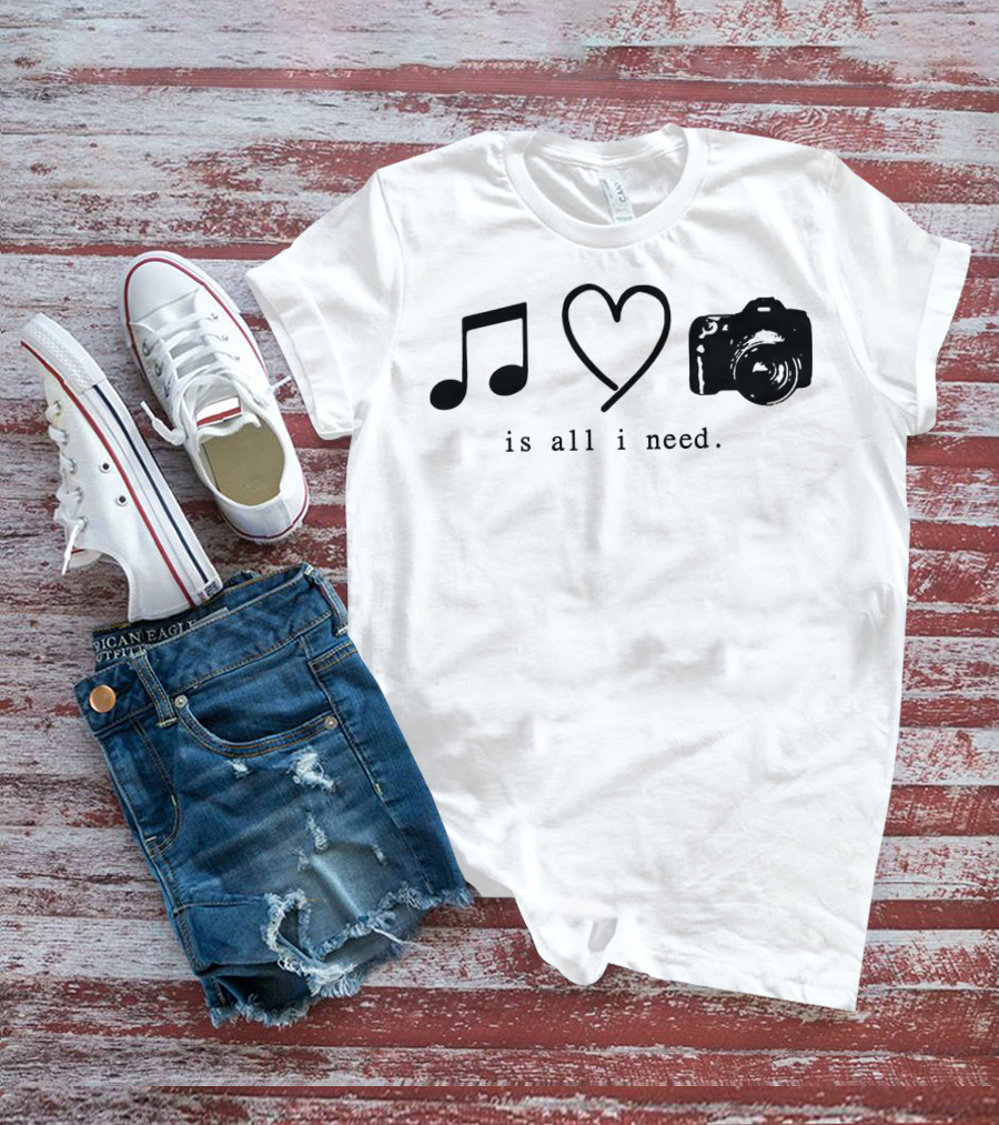 The Music Love Camera Is All I Need Shirt offers a regular fit. Made from 100% ring-spun cotton that is pre-shrunk to help maintain size and shape after washing. Features reinforced construction details for durability. Available in U.S. standard sizes S-5XL to accommodate various body types.