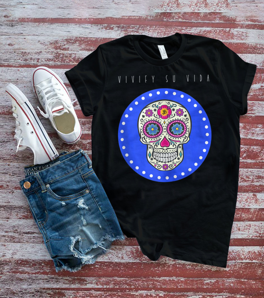Vivify Su Vida Sugar Skull Blue Circle T-Shirt