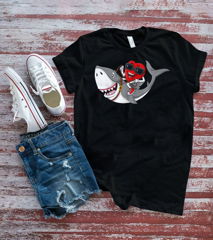 Heart Riding Shark Valentine's Day Adventure T-Shirt