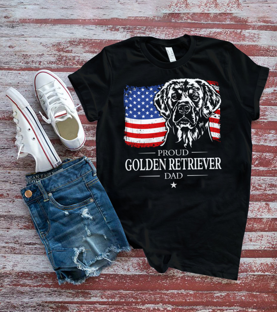 Proud Golden Retriever Dad American Flag Patriotic Canine T-Shirt