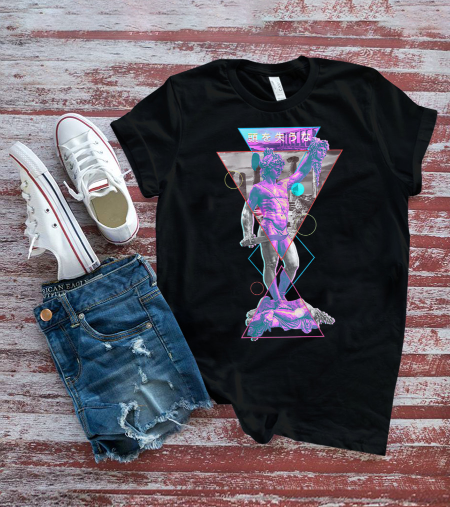 Perseus And Medusa Vaporwave Aesthetic With Japanese Text And Geometric Shapes T-Shirt
