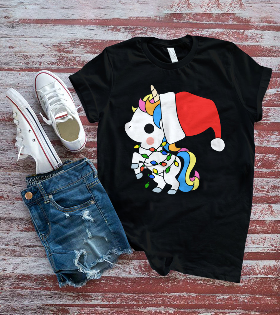 Unicorn Santa Christmas Lights Festive Fantasy T-Shirt